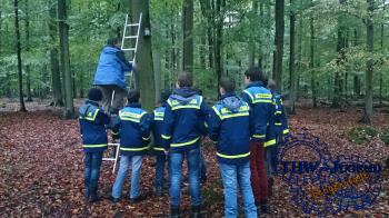 An diesem Ausbildungstreffen sollte es in den Wald gehen um den heimischen Fledermäusen einmal auf die Spur zu kommen. Also trafen wir uns pünktlich mit Hartmut vom Nabu (Naturschutzbund) Seligenstadt auf einem Parkplatz und dann ging es los. Mit einer Leiter und einem Ultraschallsensor unter den Arm liefen wir voran.
