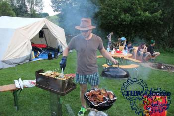 Wir haben uns um 9 Uhr in unserer Unterkunft getroffen, unsere restlichen Sachen zusammen gepackt und sind losgefahren. Nach einer guten Stunde sind wir in Bad Homburg angekommen, haben unsere Kameraden abgeholt und sind nach Gräveneck aufgebrochen. Nach dem anstrengenden Aufbau bei ca. 30 Grad haben wir gemerkt, dass wir unser Wasser in der Unterkunft vergessen haben. Manche hatten Kopfschmerzen oder waren einfach nur platt vom Aufbau. Am späten Nachmittag sprangen wir alle zusammen in die kühle Lahn und haben uns erfrischt. Zum Abendessen haben wir Gegrillt und ließen danach noch den Tag am Lagerfeuer ausklingen. Trotz der Anstrengung freuen wir uns auf die gemeinsamen Tage.
