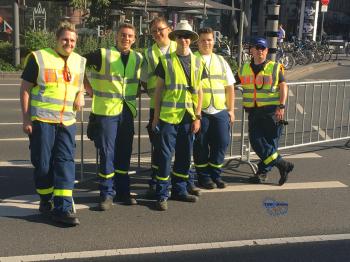 Wir trafen uns am 13.06. gegen 15:00 Uhr im OV. Dort packten wir die letzten Dinge zusammen und machten uns mit 5 Helfer unseres TZs auf in Richtung Frankfurt. Nach einer halb-stündigen Fahrt erreichten wir unser Ziel. Dort stellten wir Barrikaden auf und begannen mit dem Sichern einiger Straßen und Unterstützung bereits vor Ort eingetroffener Einsatzkräfte. Gegen 16.15 ging es dann endlich los.