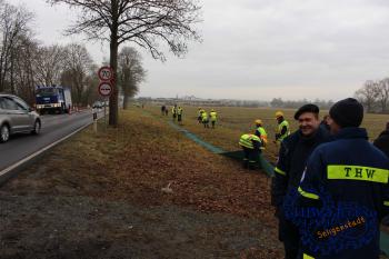 Dort trafen wir uns mit der Jugend aus Bad Homburg, die auch sehr Mannstark erschienen war. Nach einer kurzen Beschprechung der JB's sicherten wir die Fahrbahn an, um unsere Sicherheit zu garantieren, so wie wir es in der Ausbildung zuvor gelernt haben. Jetzt da alles abgesichert war sammelten wir uns und traten zusammen mit der Bad Homburger Jugend an, um die einzelnen Aufgaben abzusprechen. Als wir kurz darauf bemerkten wie weit die Leute vom NaBu schon waren, sahen wir der Aktion mit noch mehr Enthusiasmus entgegen, da wir merkten, dass wir in kurzer Zeit noch mehr Zaun als sonst aufstellen können und damit den Kröten helfen zu überleben. Es ging alles recht flott und Hand in Hand hatten wir mehrere Kilometer Zaun in knapp 3 Stunden aufgestellt, was neuer Rekord ist. Zum Schluss traten wir erneut an, da sich der NaBu bedankten wollte. Anschließend räumten wir zusammen um abfahren zu können.